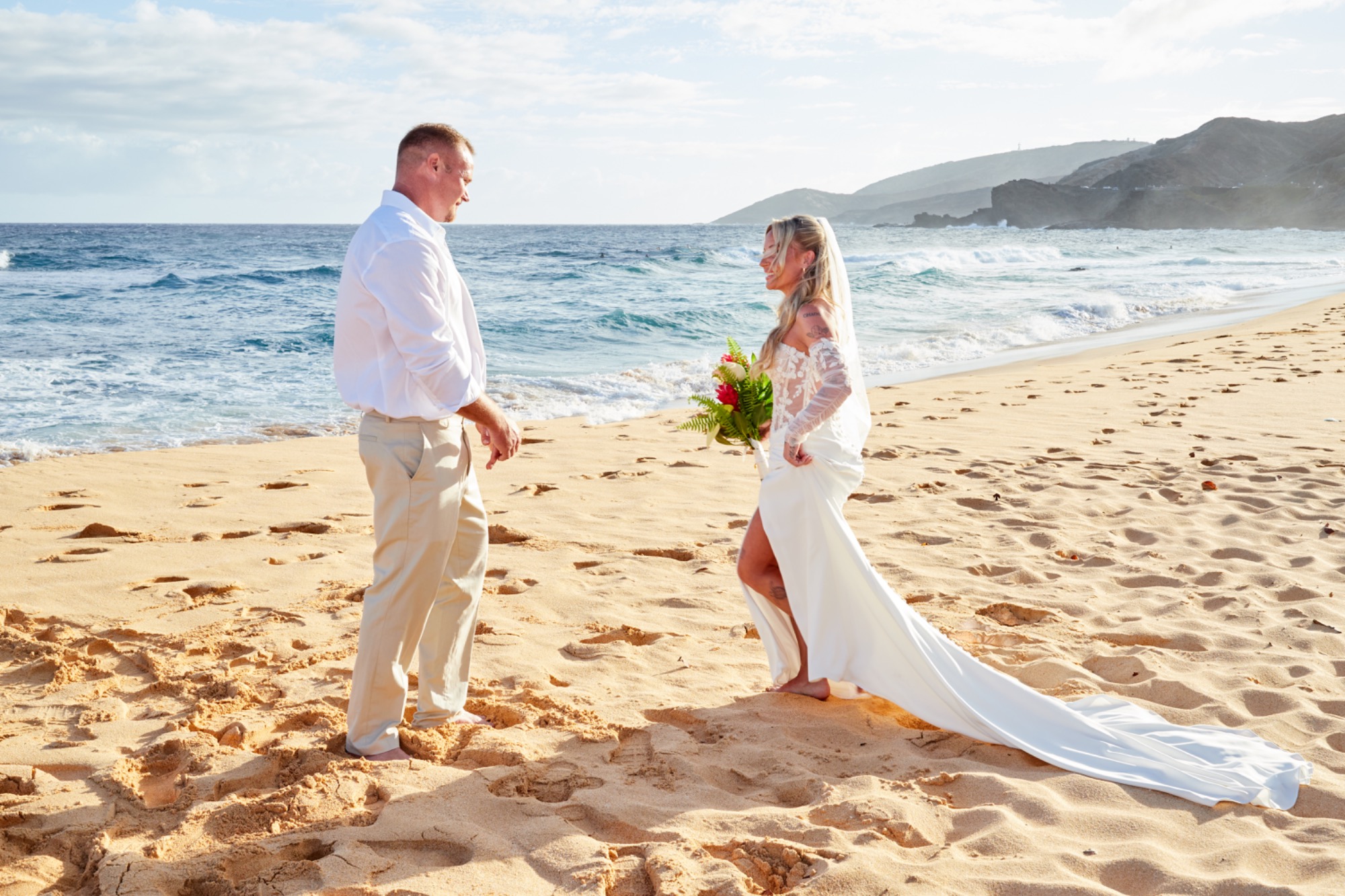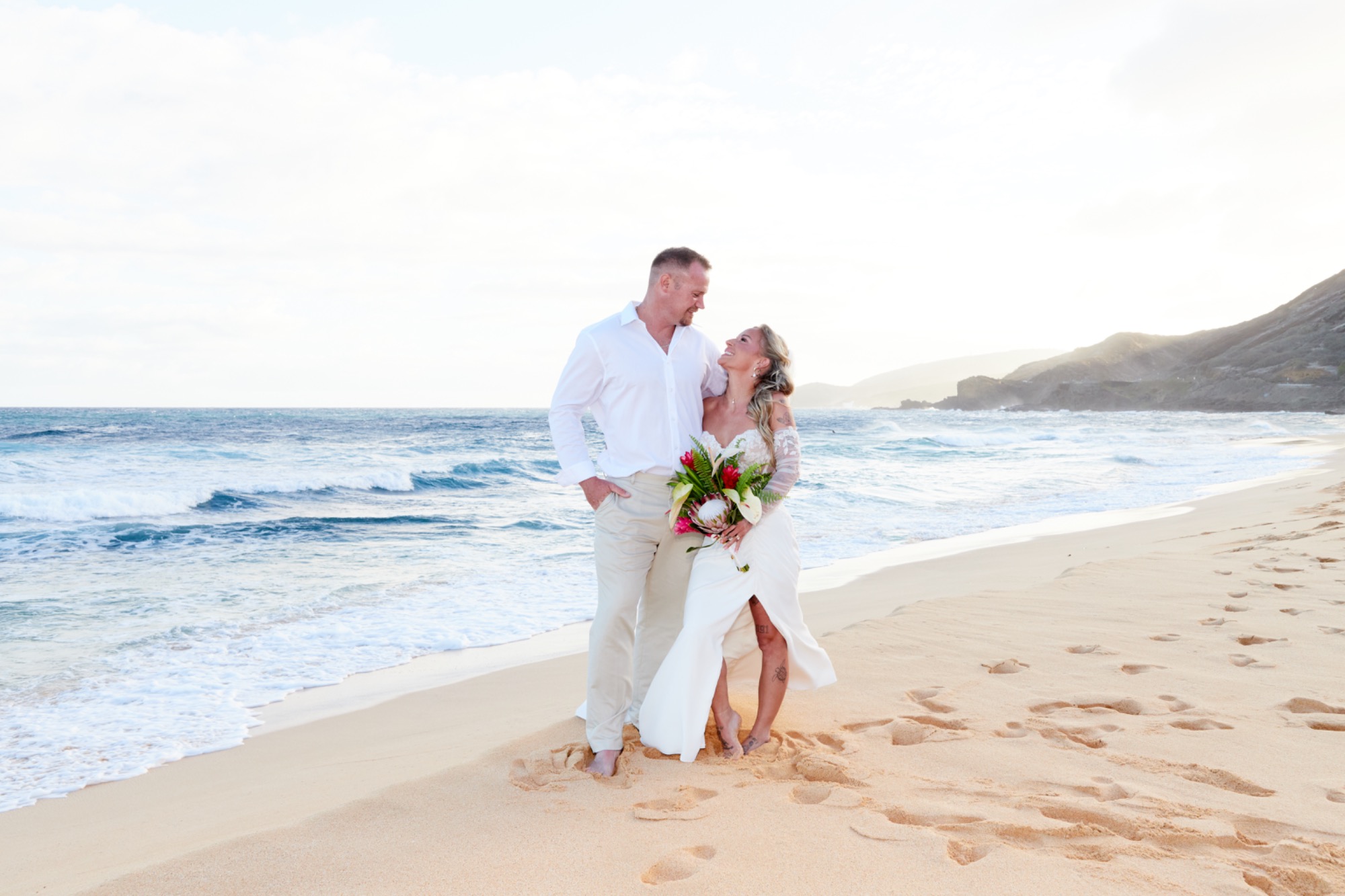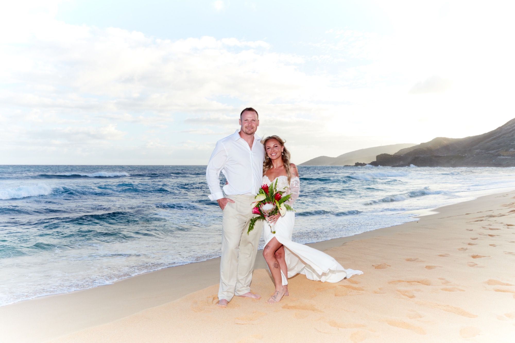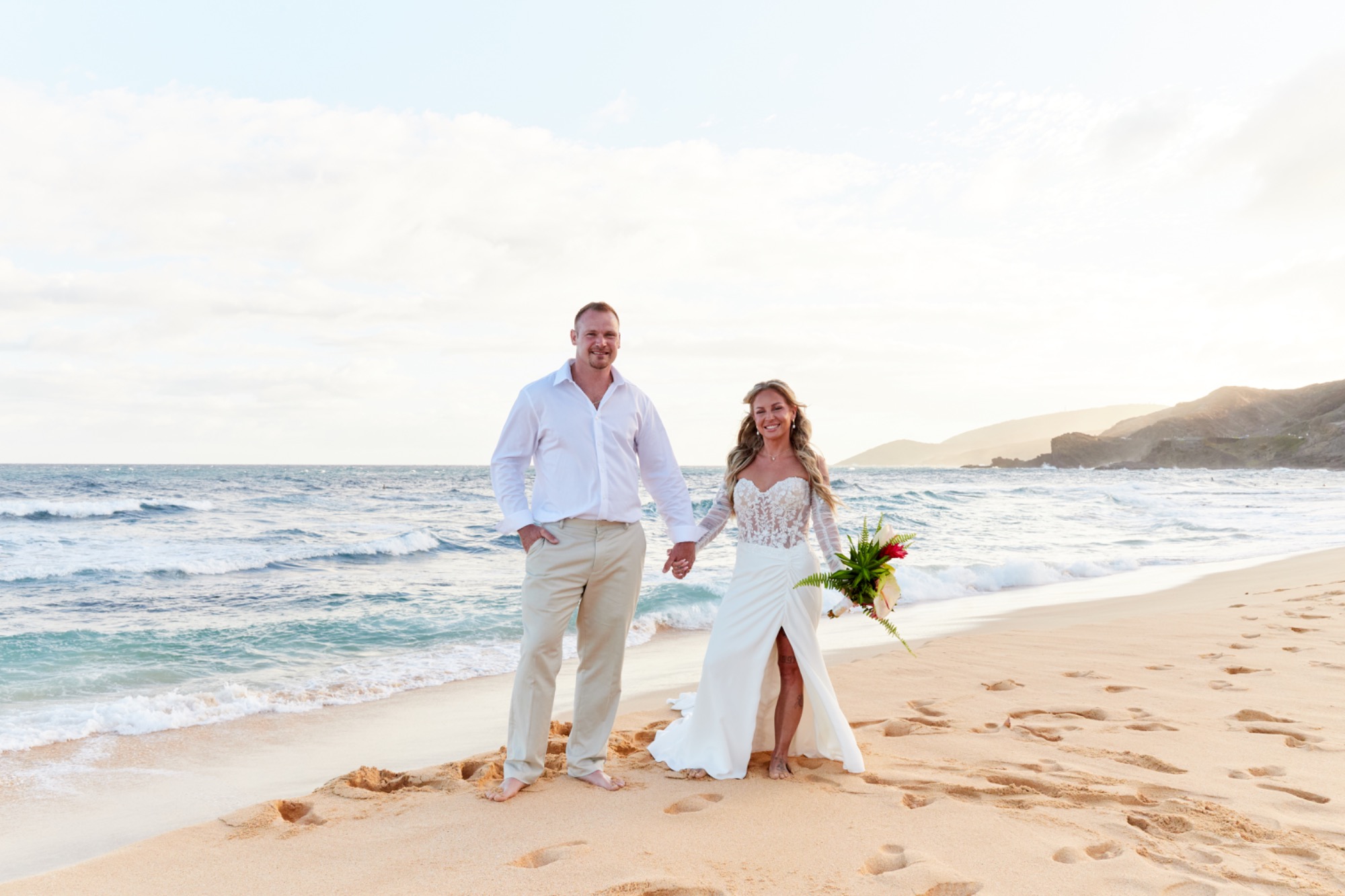 Sandy Beach is a famous body surfing beach and visitor beach on Oahu. It's about 40-45 minutes from Waikiki. With broad white sand and blue ocean vistas, the might be a perfect venue for your ceremony. It can be busy during the day so, we suggest early morning before 10 am or late afternoon after 4 pm and depending upon the time of year.